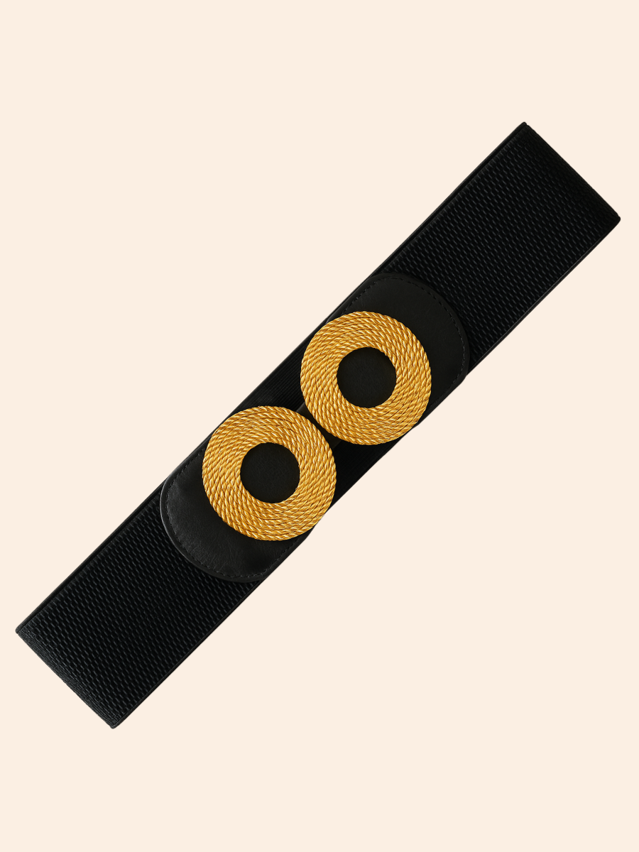 Correa Elástica con Hebilla Circular Doble en Dorado - Negro