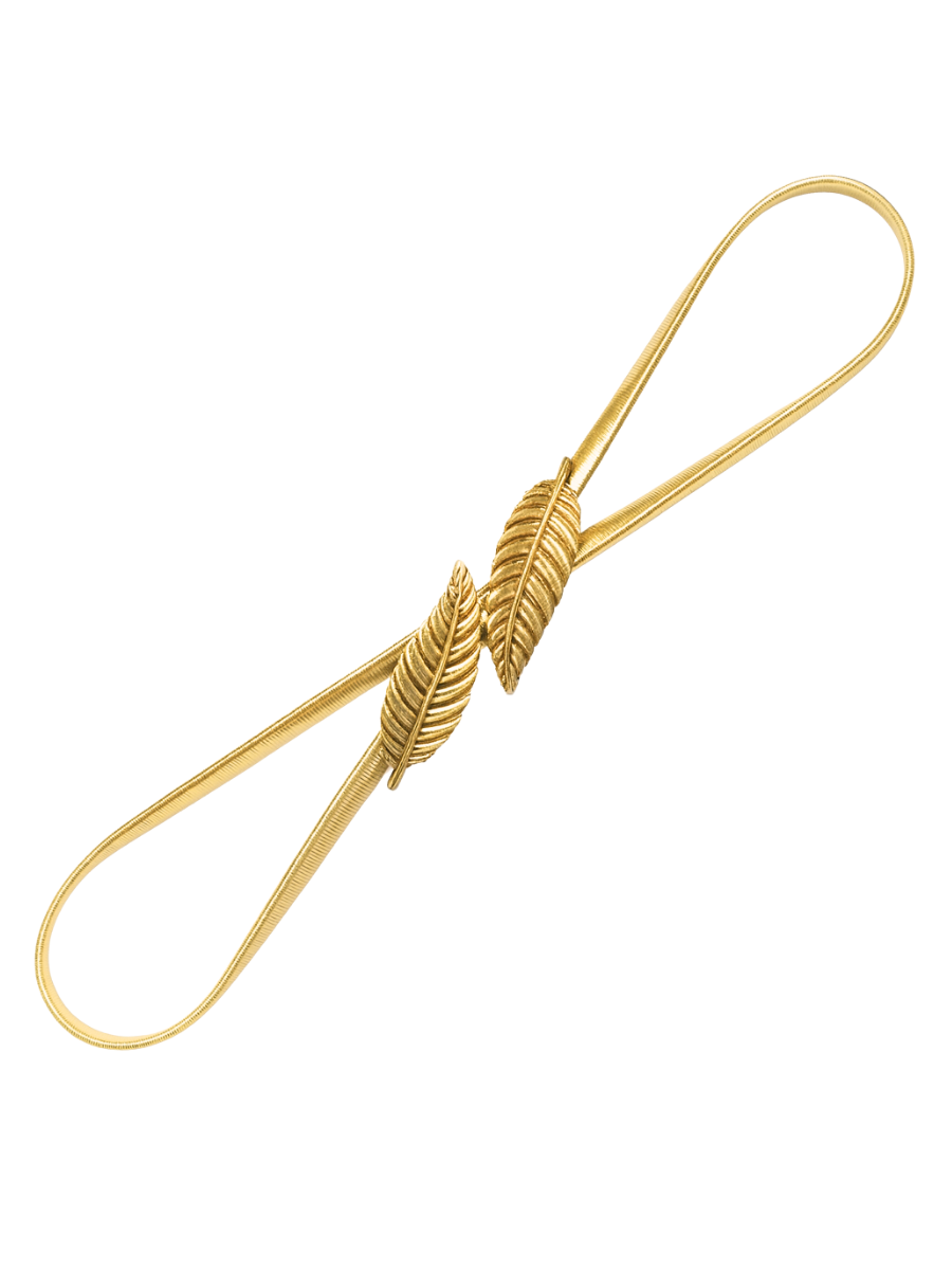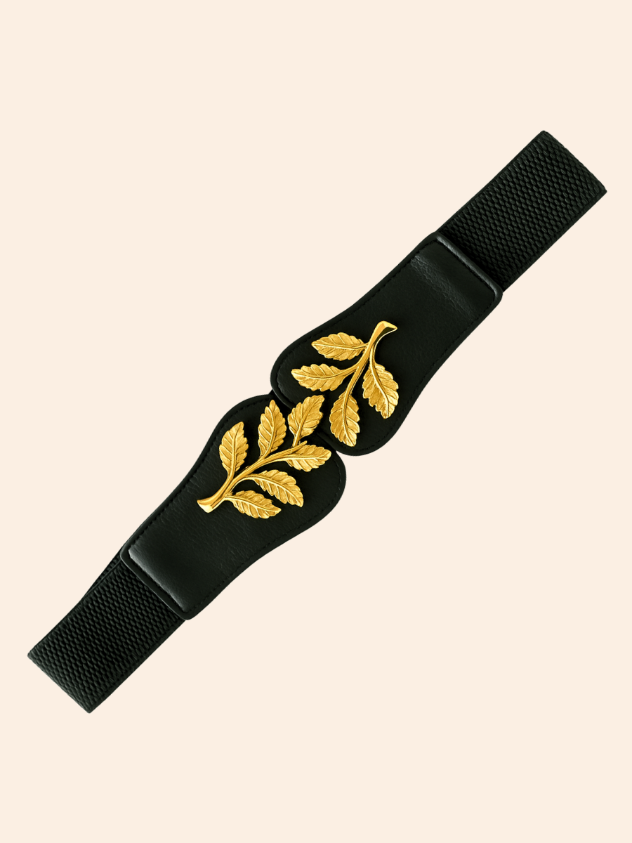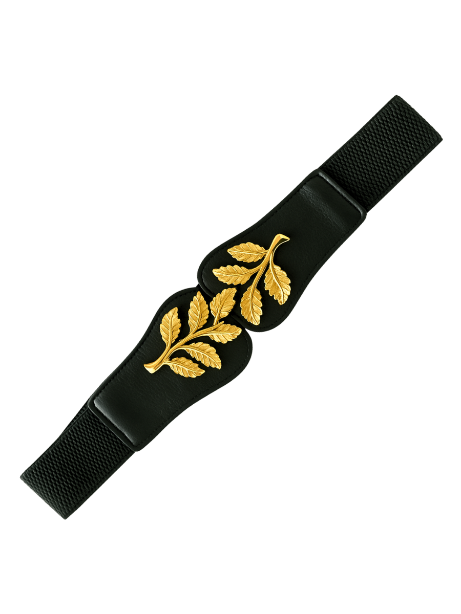Correa Elástica con Hebilla de Hojas en Dorado - Negro