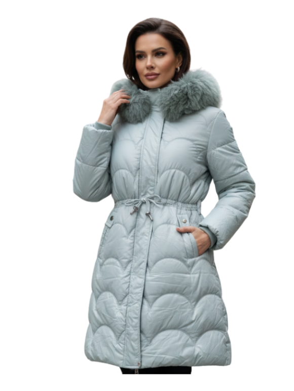 Casaca Larga Ajustable con Piel en Capucha - Verde