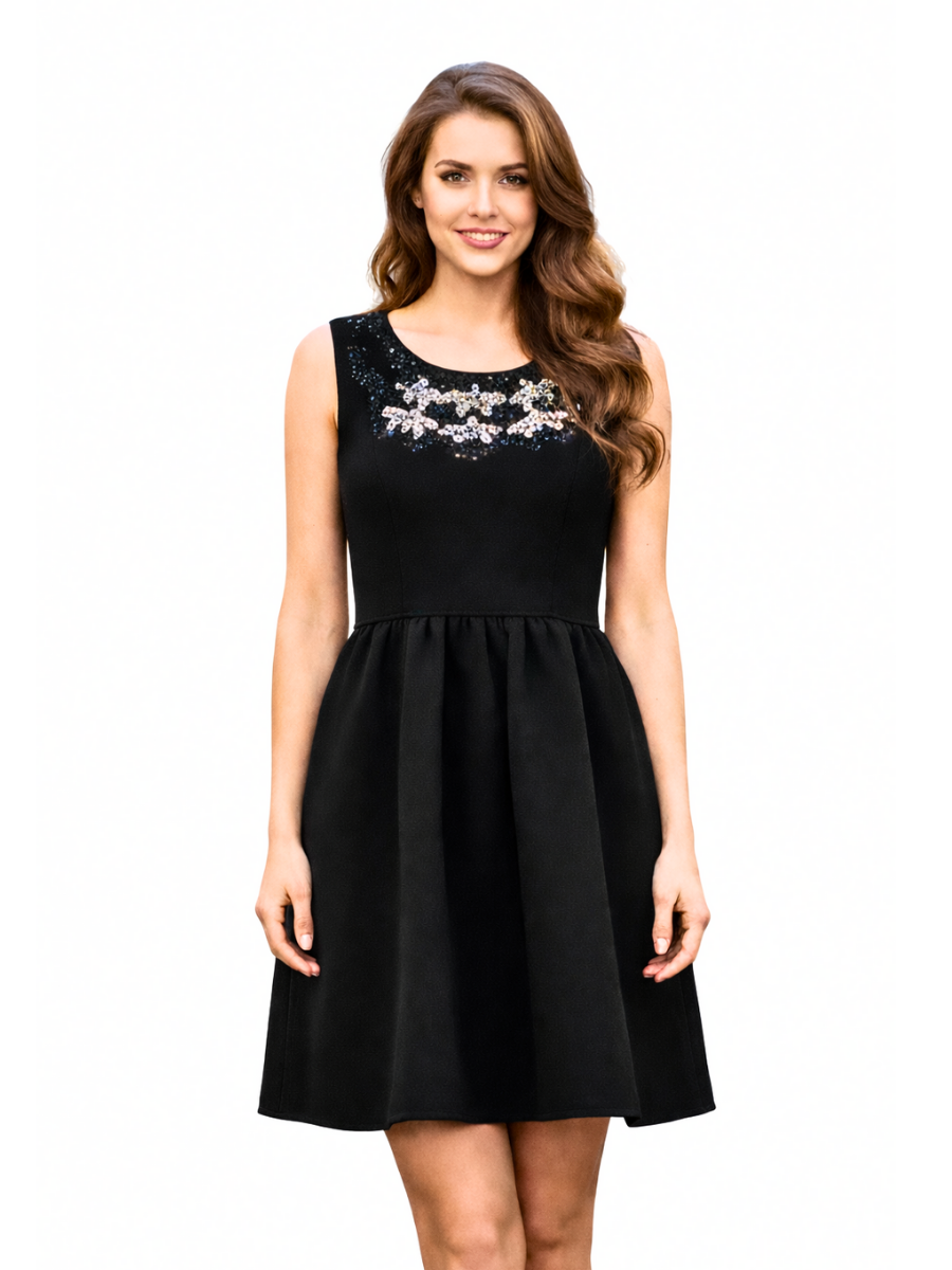 Vestido Corto Manga Cero Bordado con Lentejuelas - Negro