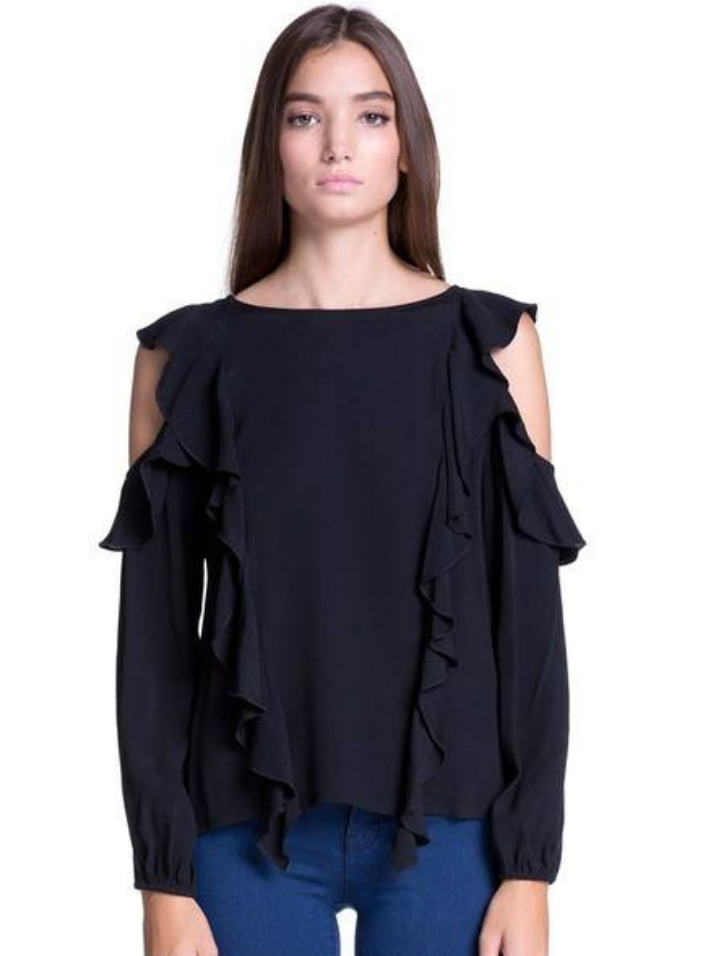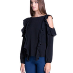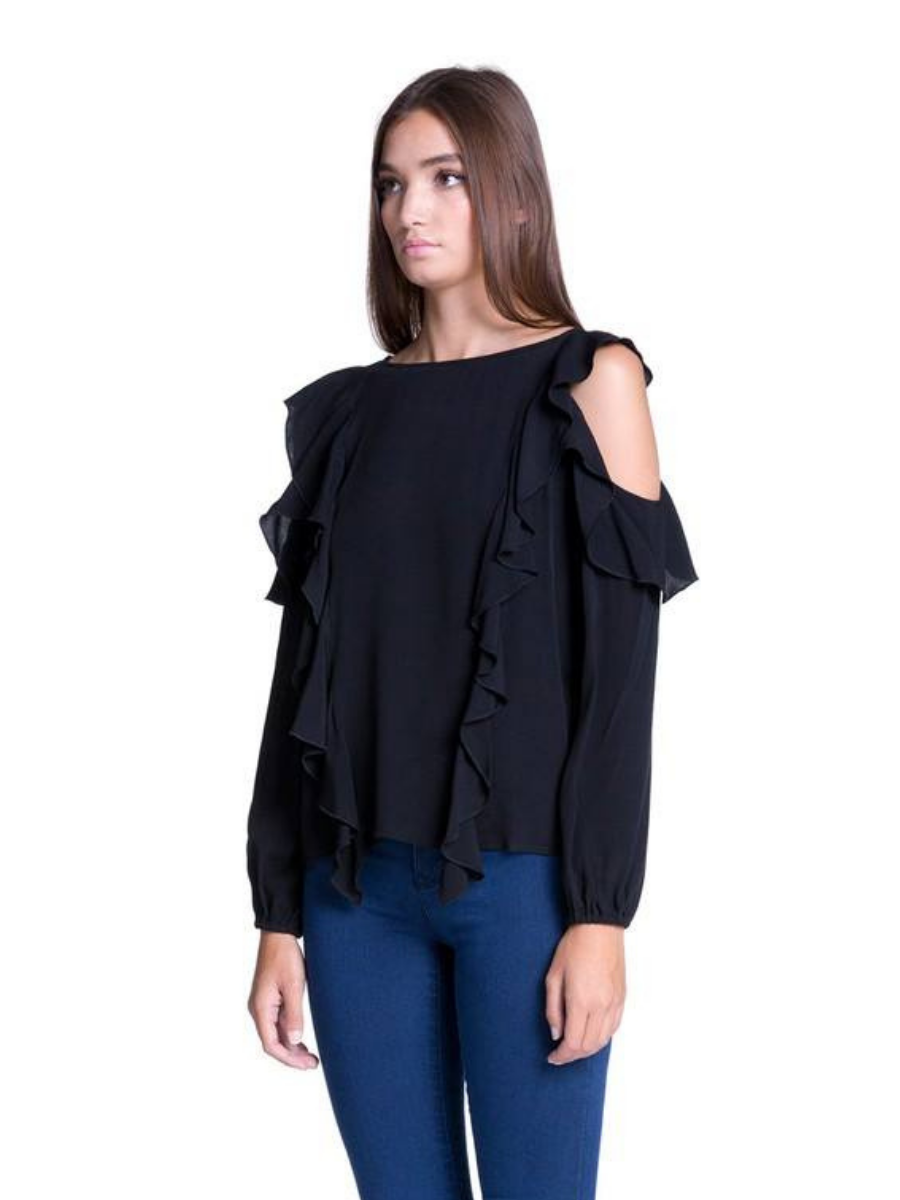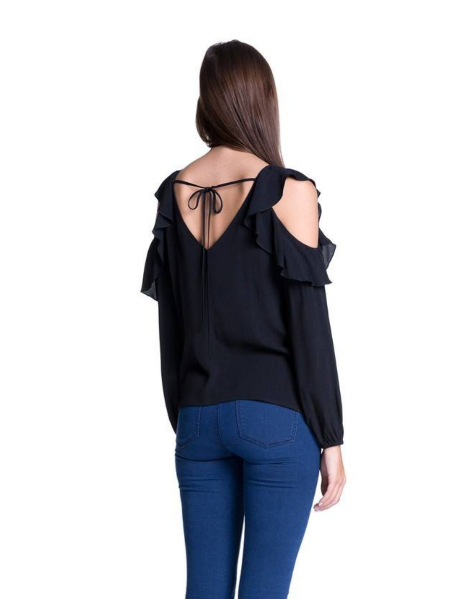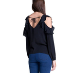 Blusa Cold Shoulder y Ruffle vertical - Negro