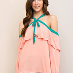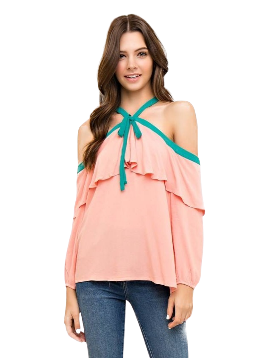 Blusa con Ribete Turquesa Cold Shoulder - Rosado