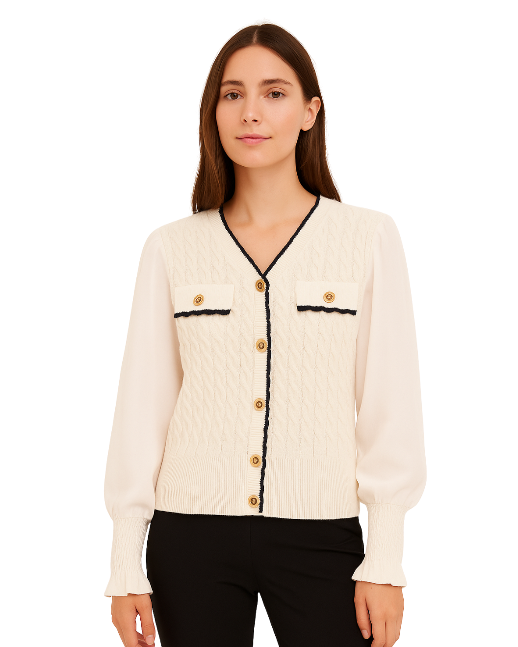 Cárdigan/Blusa con Mangas de Gasa - Blanco