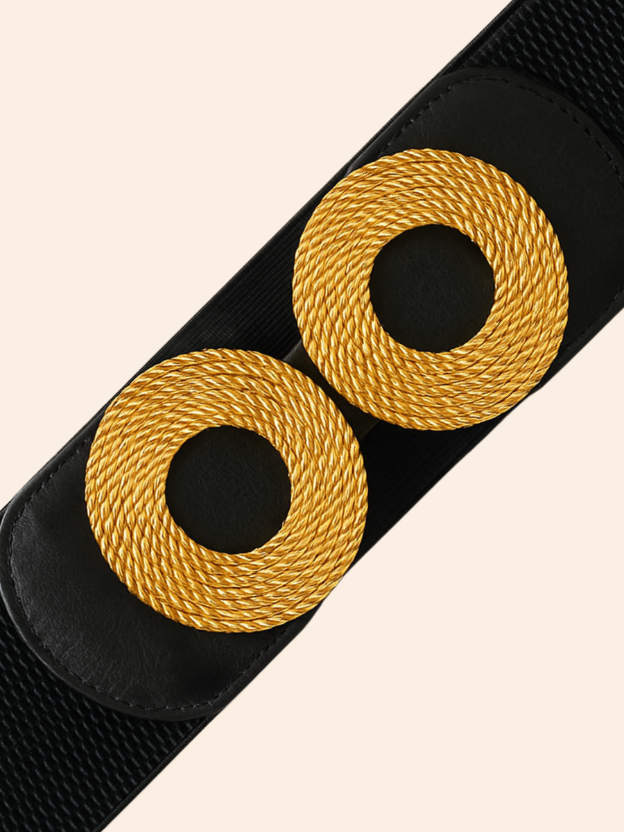 Correa Elástica con Hebilla Circular Doble en Dorado - Negro