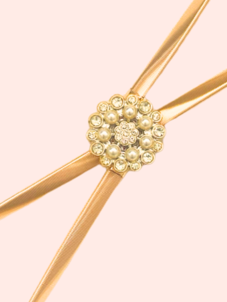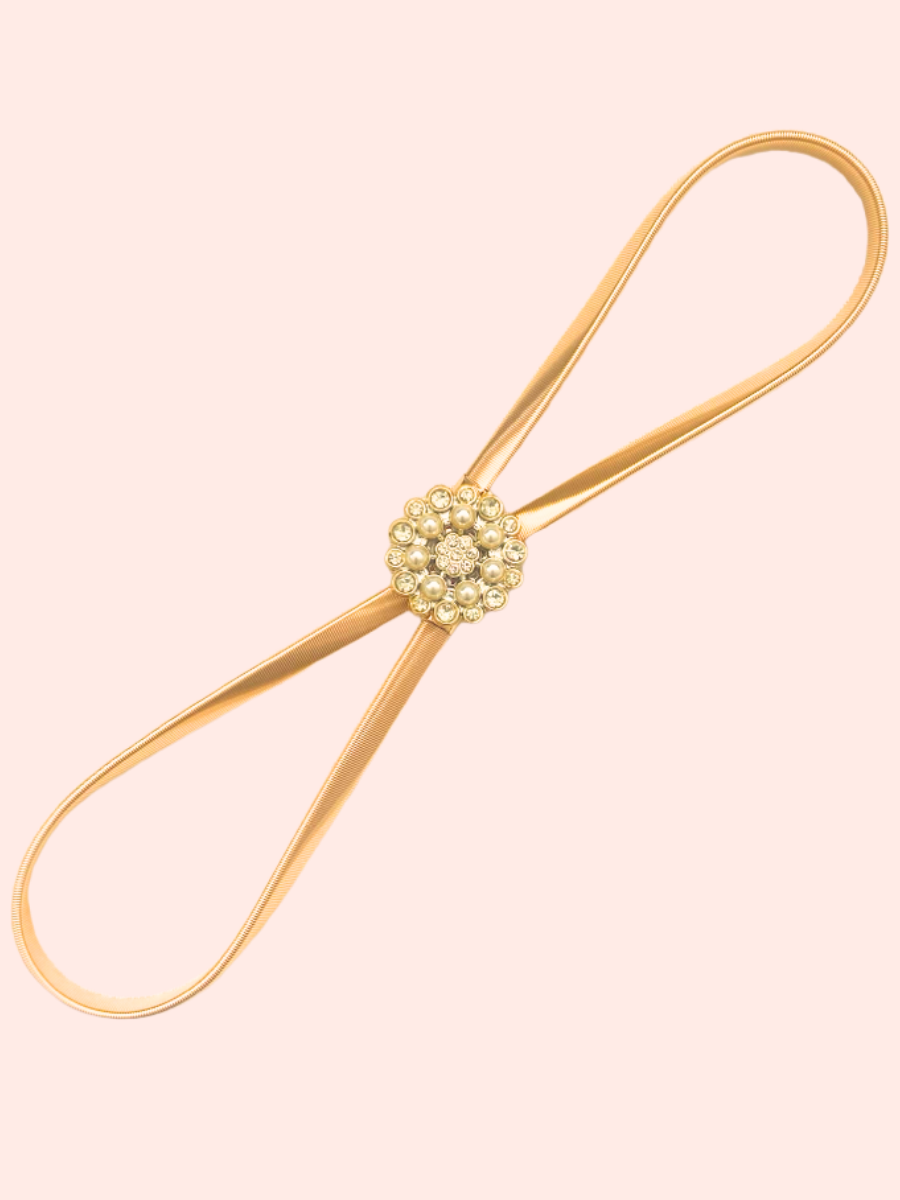 Correa Fina con Hebilla de Flor de Perlas y Cristales - Dorado