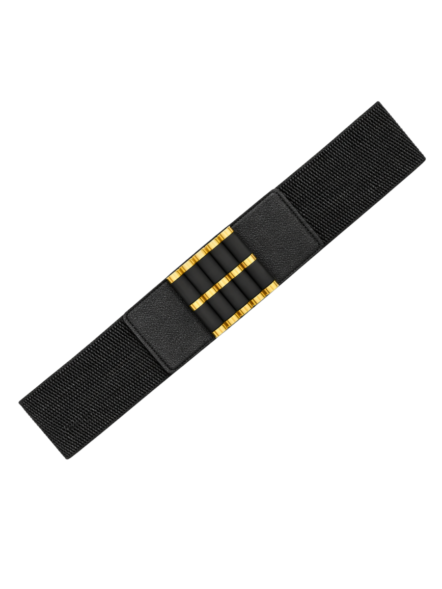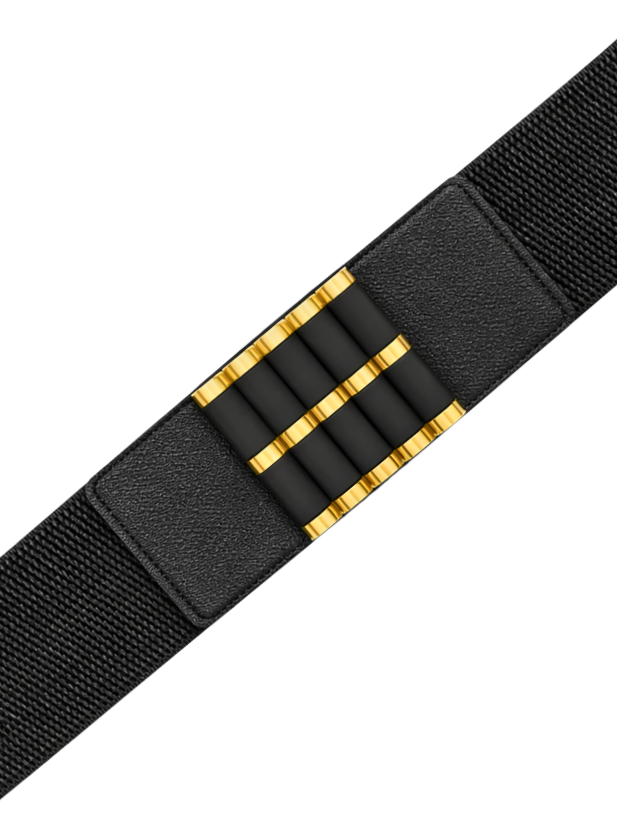 Correa Elástica con Hebilla Negra y Bordes Dorados - Negro