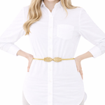 Nuestra correa destaca por su diseño elástico metálico que se ajusta cómodamente a la figura, realzando la cintura con un acabado pulido. Su hebilla central en forma de tulipán doradas aporta un aire delicado y femenino. Versátil y elegante, puede usarse con vestidos, enterizos, blusas o faldas, aportando equilibrio entre estilo y funcionalidad. Es un accesorio imprescindible para quienes buscan un detalle dorado que complemente su look con distinción.