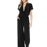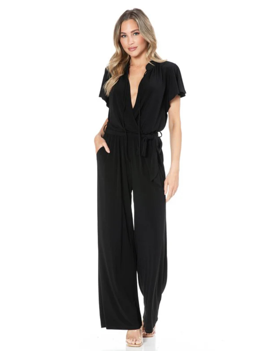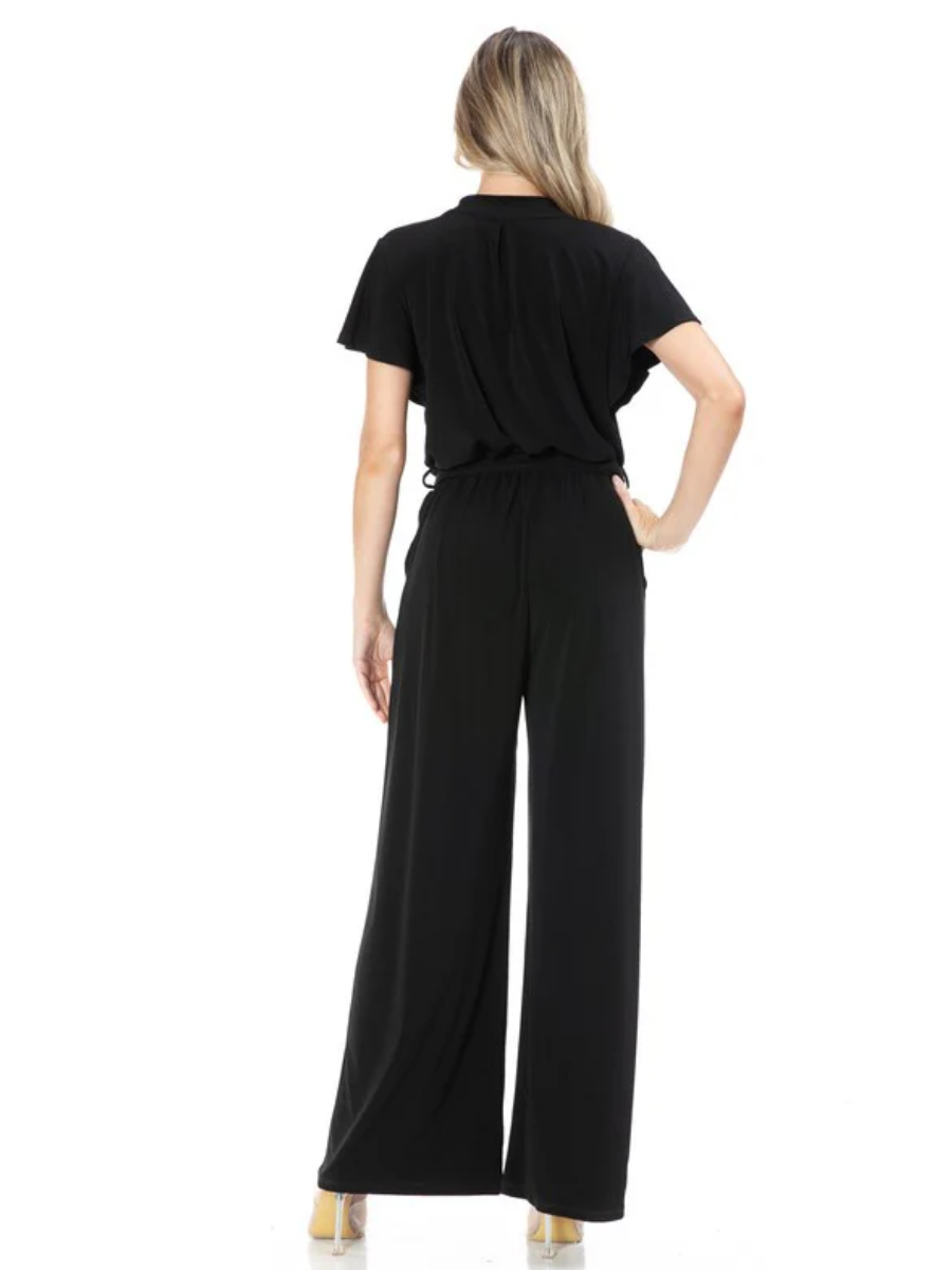 Enterizo Negro Ruth – Escote Cruzado con Cintura Ajustable y Pierna Ancha – Negro