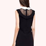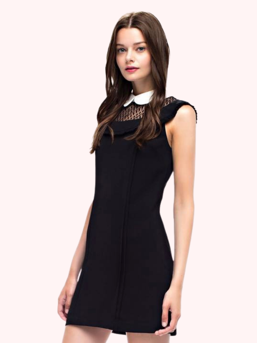 Vestido Corto con Cuello Blanco y Detalle de Encaje en el Escote - Negro
