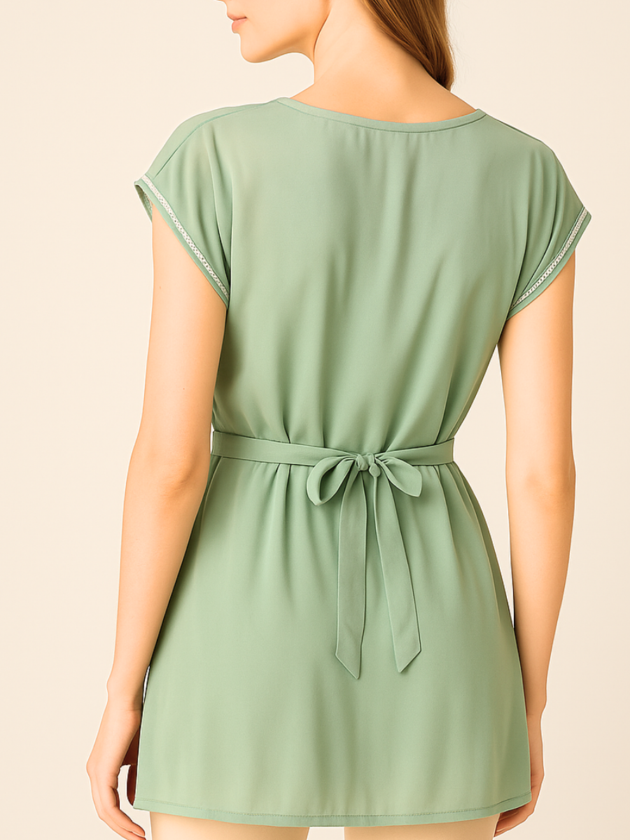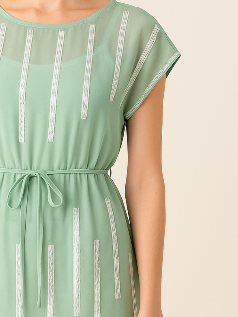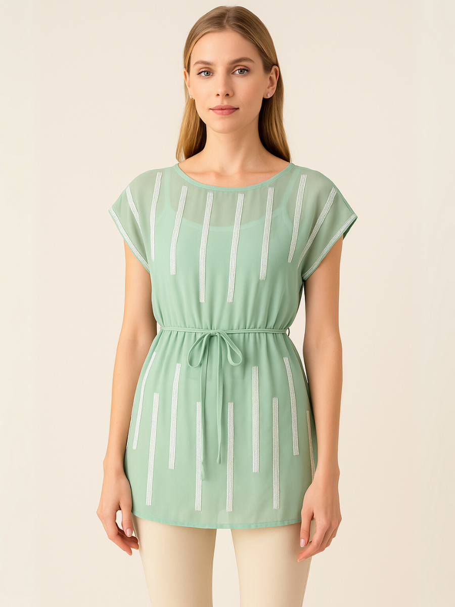Vestido/Blusa de Gasa con Cintura Ajustable y Detalles de Lentejuelas Verticales - Verde