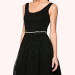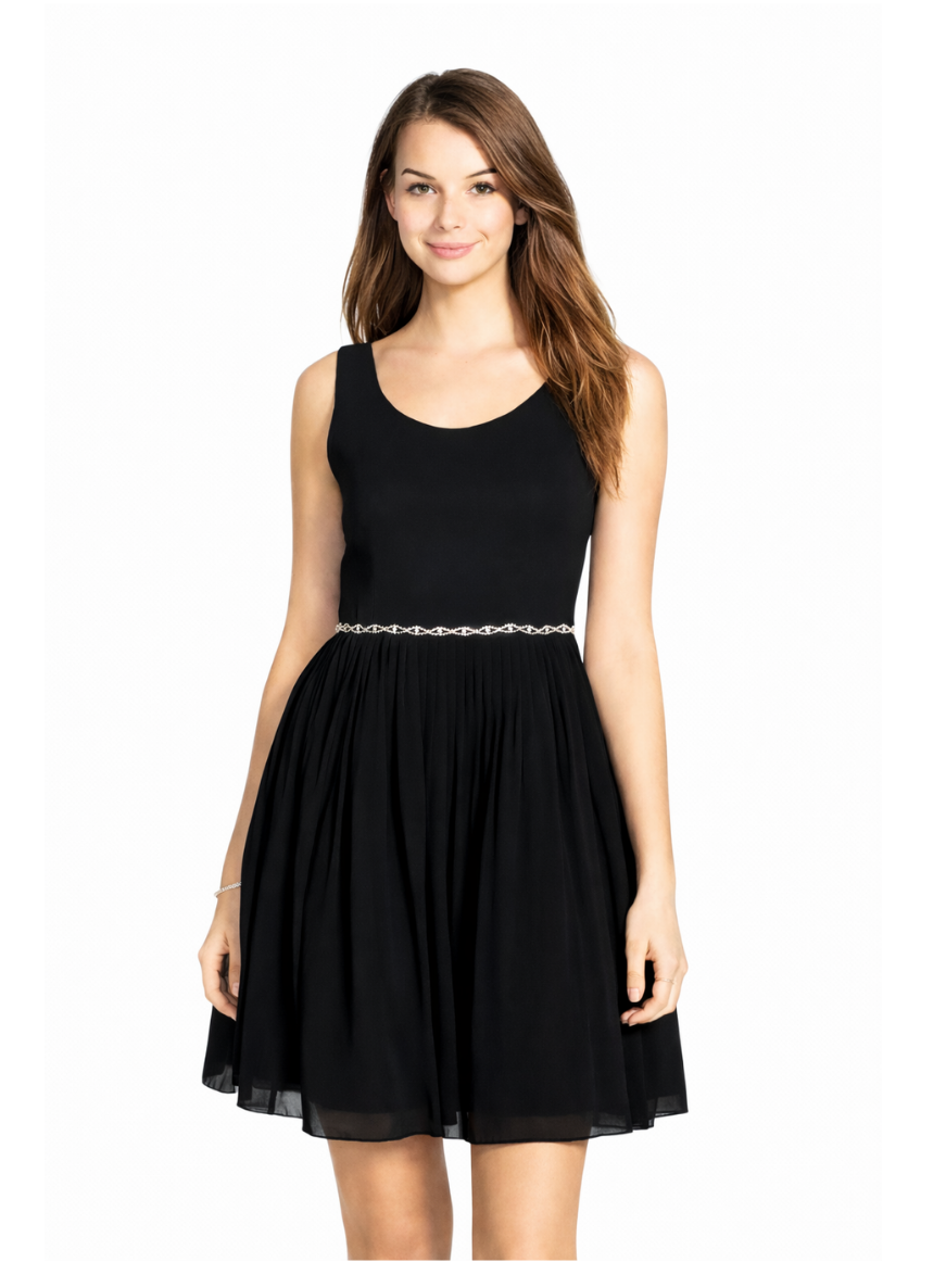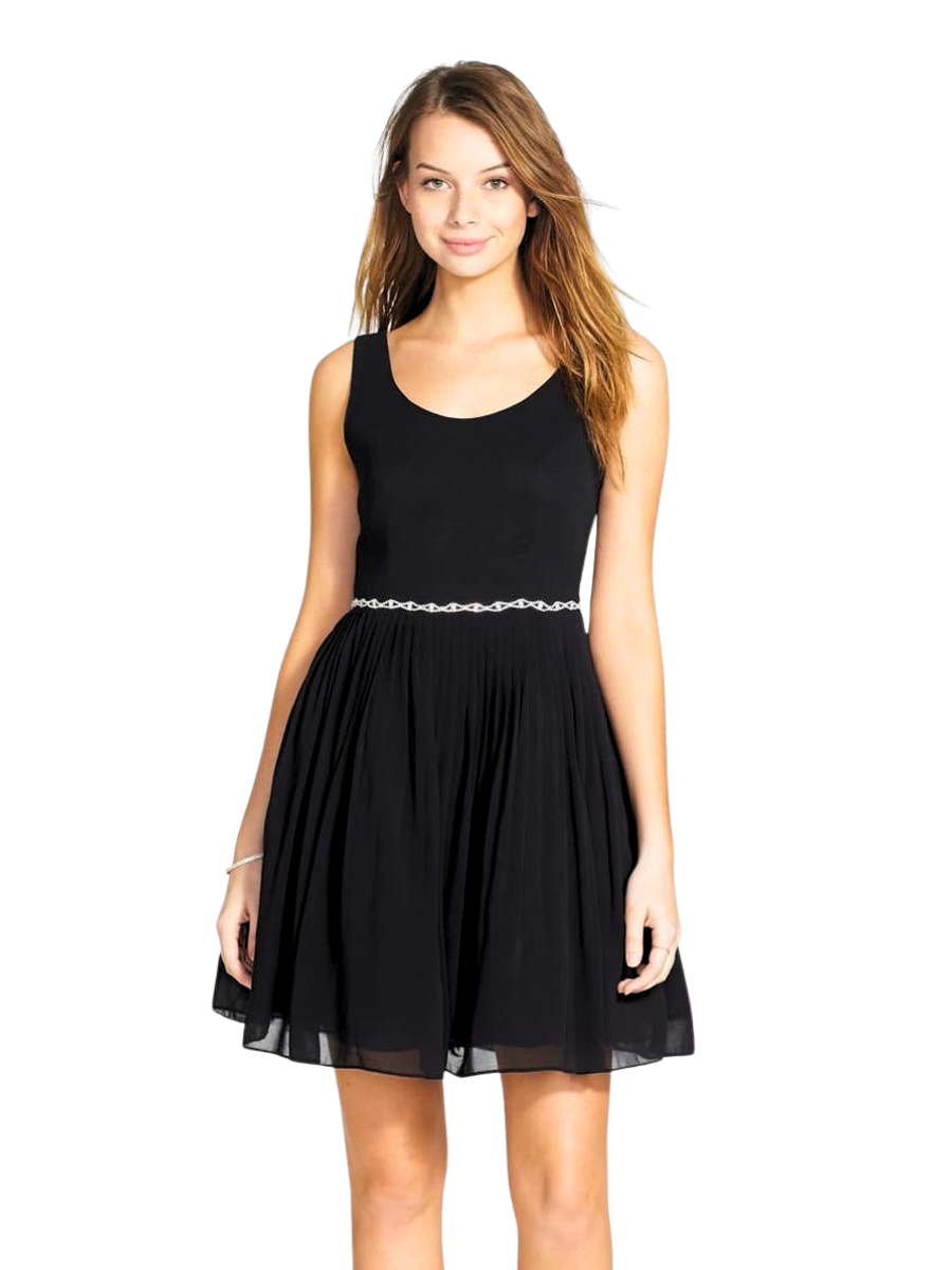 Vestido Corto sin Mangas con Falda Plisada - Negro