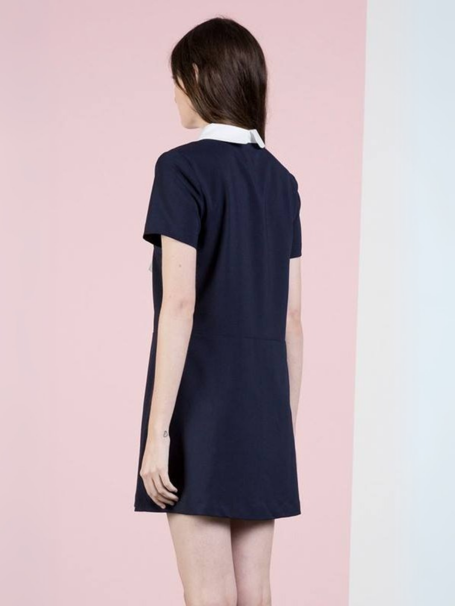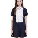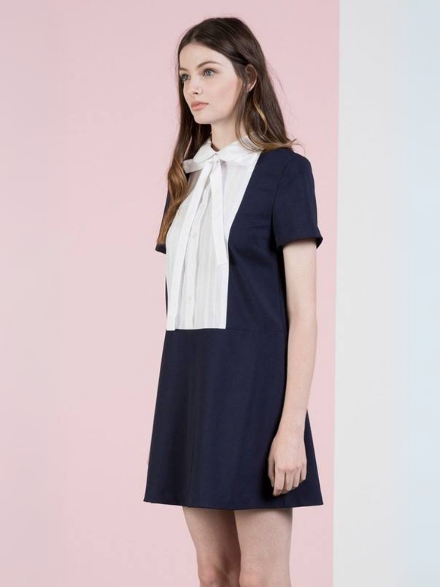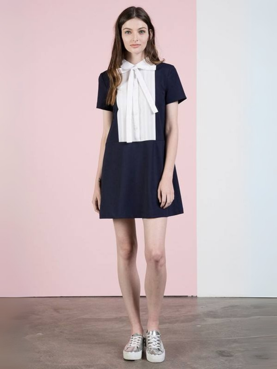 Vestido Corto Navy con Tableado en el Pecho - Azul y Blanco