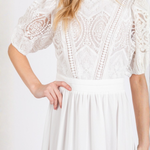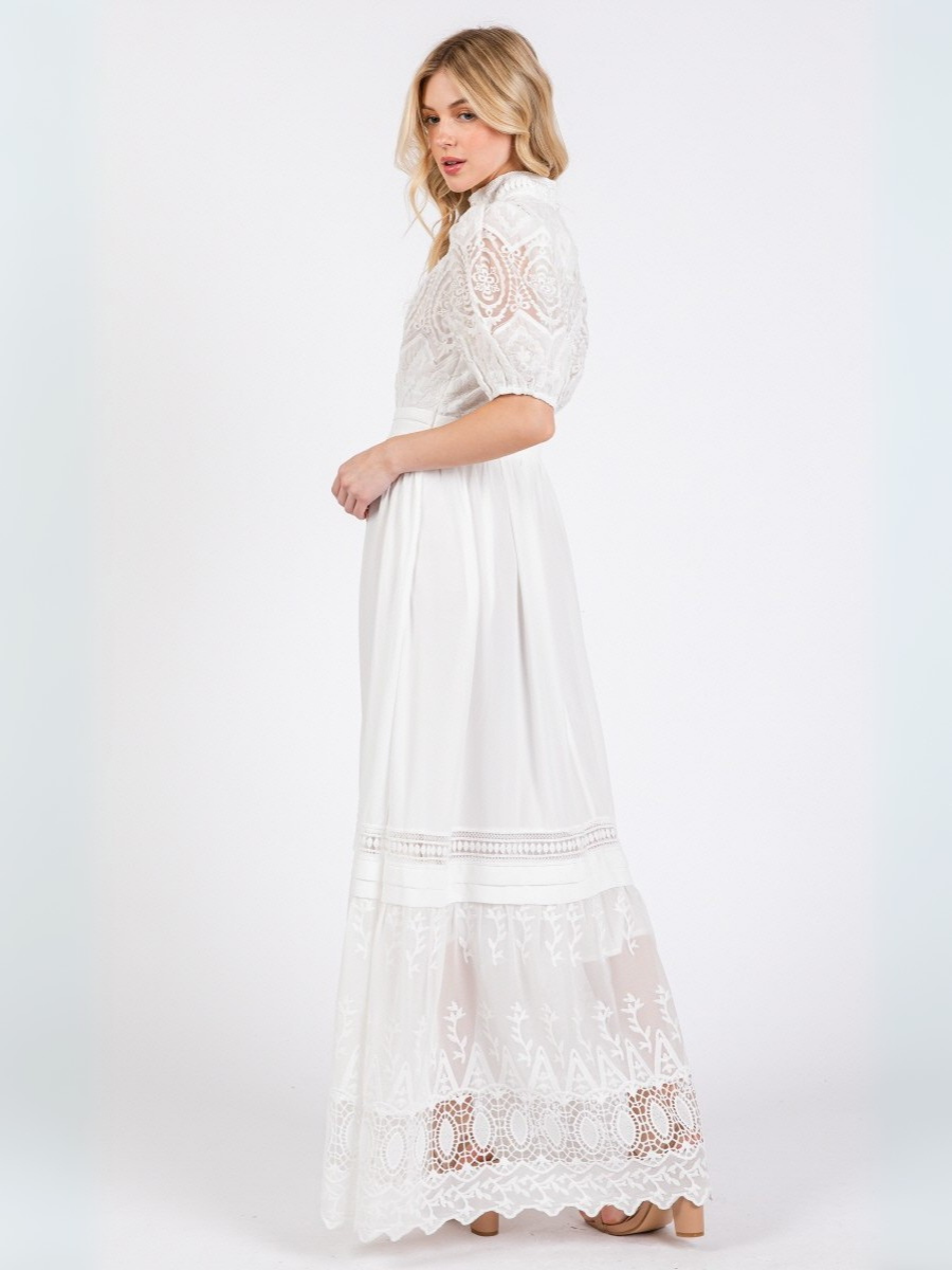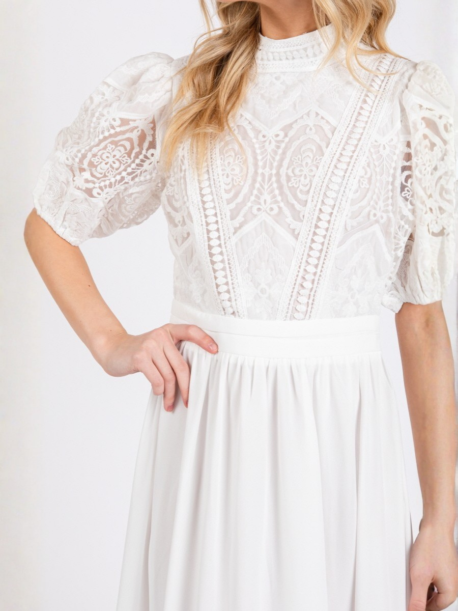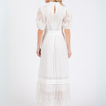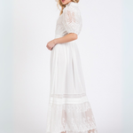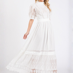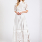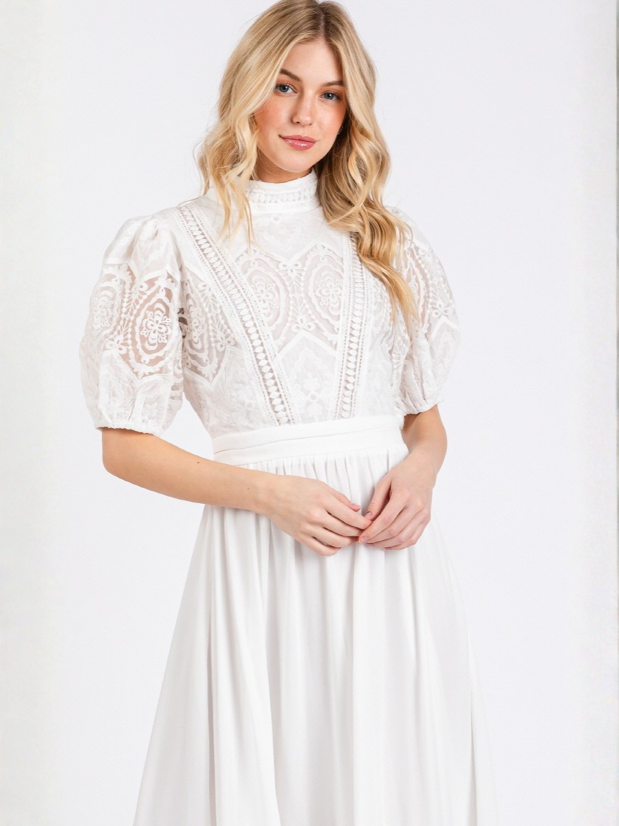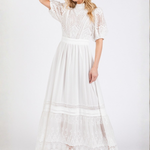 Vestido Maxi Erika – Largo de Encaje con Cuello Alto Romantic – Blanco